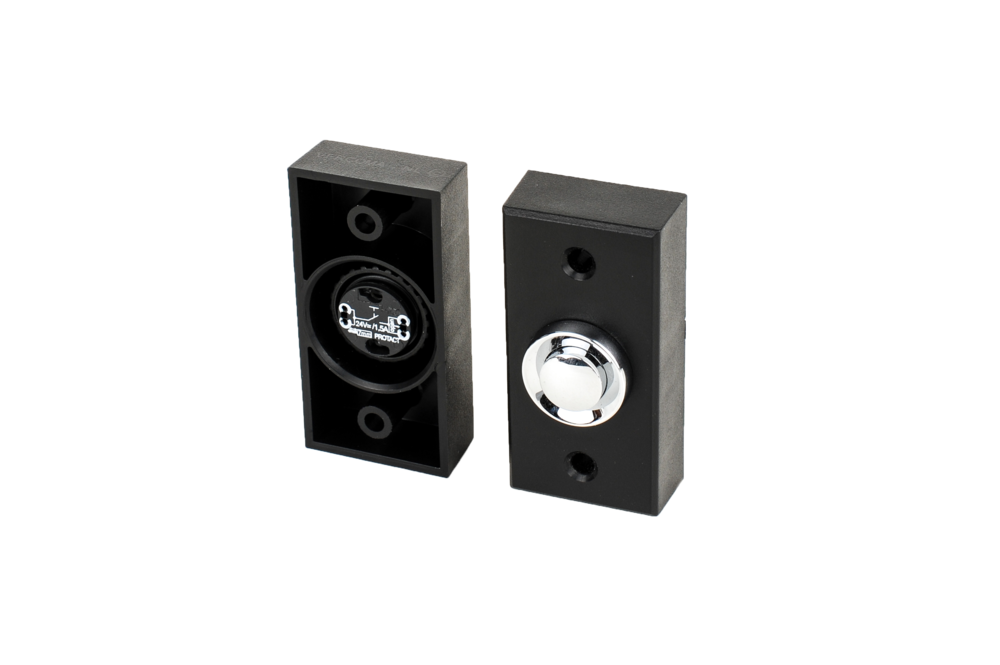 Kunststof (PA) behuizing, zwart, met PROTACT 260CR beldrukker. Inclusief twee stuks 3 x 35 montage schroeven. Geschikt voor digitale (aansluiting direct op telefoon/monitor) en conventionele (aansluiting op traditionele schel/ding-dong) systemen.