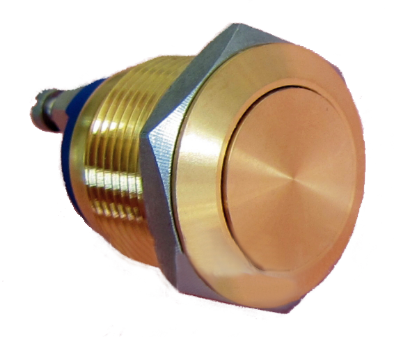 Messing inbouw beldrukker met 22 mm krans. Voor gebruik in bellenborden. Uitermate geschikt voor TRESPA. Fysiek voelbare terugmelding. IP65 (spuitwaterdicht) - IK09. Voor plaatdiktes tussen 0,5 en 10 mm.