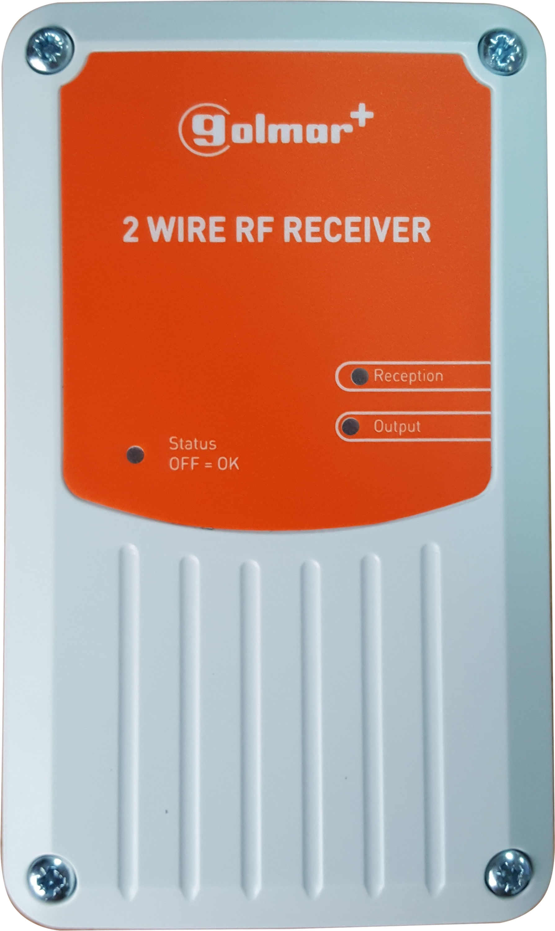 868 Mhz, IP67. In open veld bereik tot 100 meter. Twee aders (FTP of STP, max. 30 meter of 0,8 mm afgeschermd tot max. 100 meter) tussen controller en RF ontvanger. Voeding: 12-24V - Gevoed door de controller