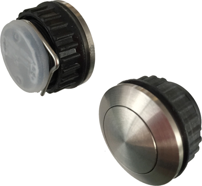 RVS behuizing én bolle dome bouton | Max. 24V AC/DC - 1,5Amp | Vergulde insteek contacten bedrading (0,6mm - 0,8mm) inclusief speciale tool voor losmaken | Kunststof montagering | Rubber seal voor extra afdichting insteekcontacten | IP 54; stof en spatwaterdicht | Voor plaatdikte tussen 0,5 en 6 mm