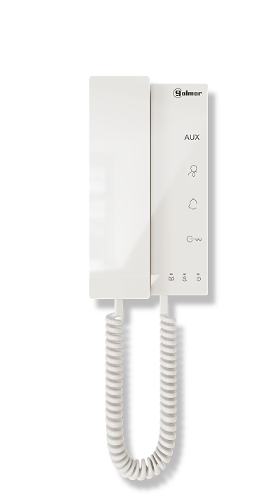 Wandmodel. Opbouw slechts 31 mm dun! ABS behuizing. Dipswitch programmeren. Systeem gebonden oproepsignalen voor herkenbaarheid oproep. Ringtone selectie. Capacitieve soft-touch toetsen met feedback: deur openen, AUX (2de deuropener of trappenhuis verlichting), Portier en volume oproeptoon en niet storen. Inclusief kunststof montageplaatje.