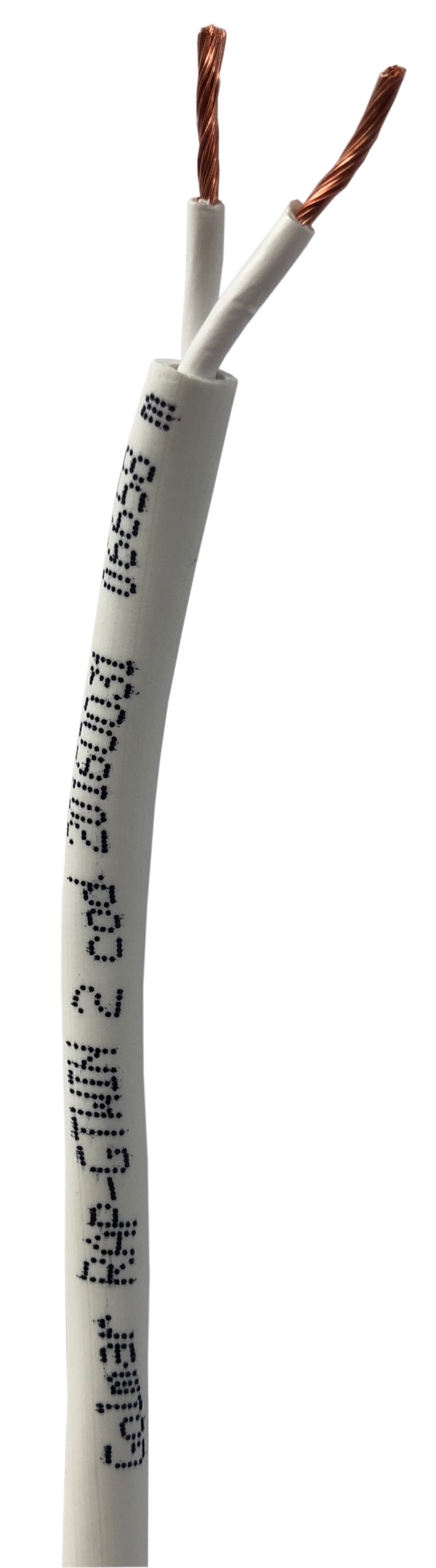 Halogeen vrij. Twee getwiste litze aders van 2 x 1 mm². Mantel in de kleur wit, diameter 6,4mm. CPR certificaat Dca-s1,d2,a1.